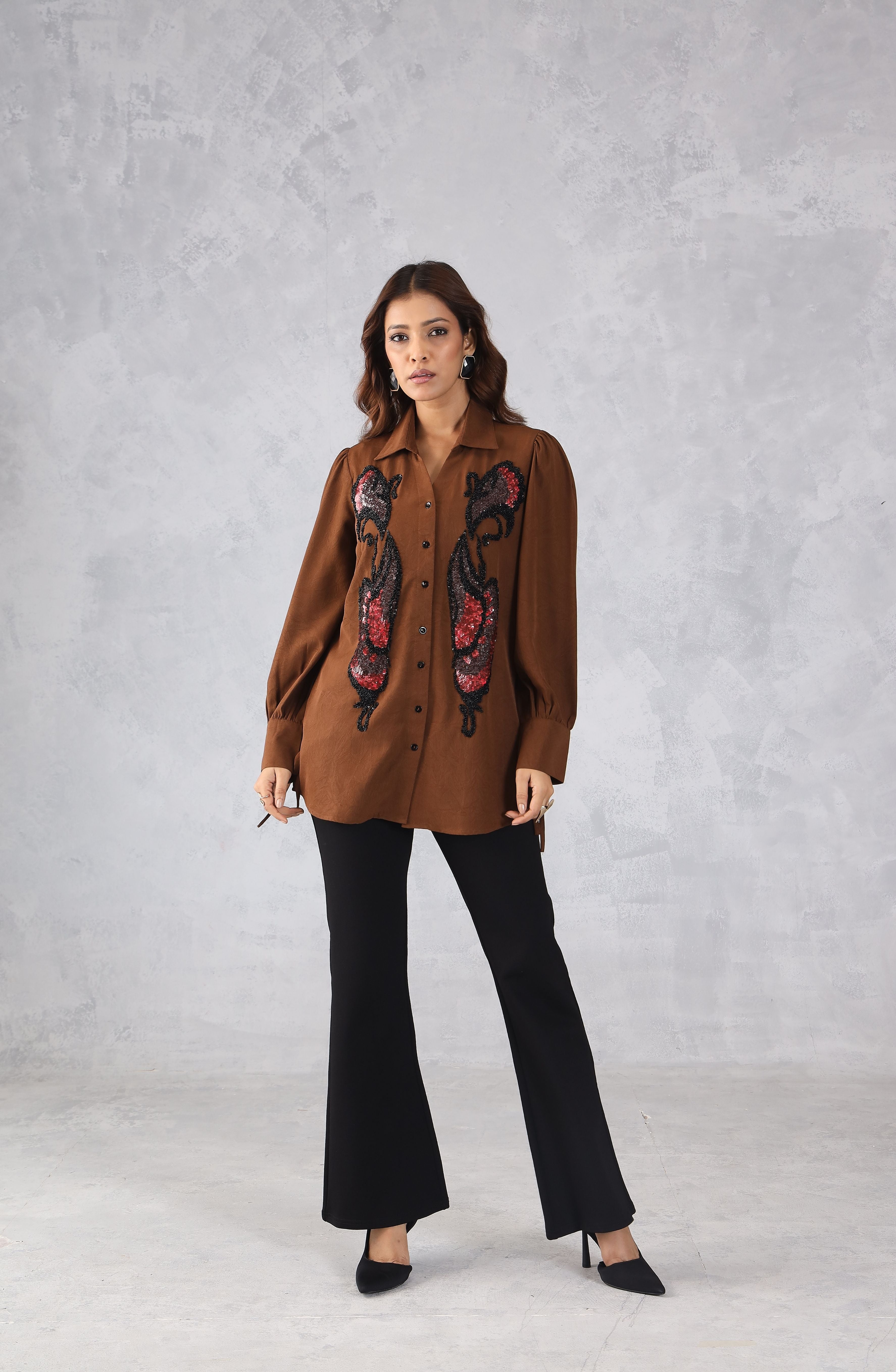 Elegant Brown Sequin Shirt